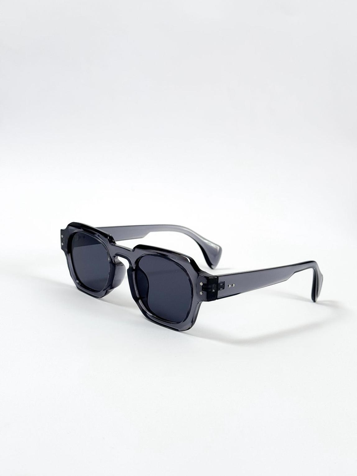 Make a distinctive style statement with these uniquely shaped shades crafted in a sophisticated transparent grey acetate. The bold, angular frames and dark lenses offer a contemporary edge for the fashion-forward individual.
