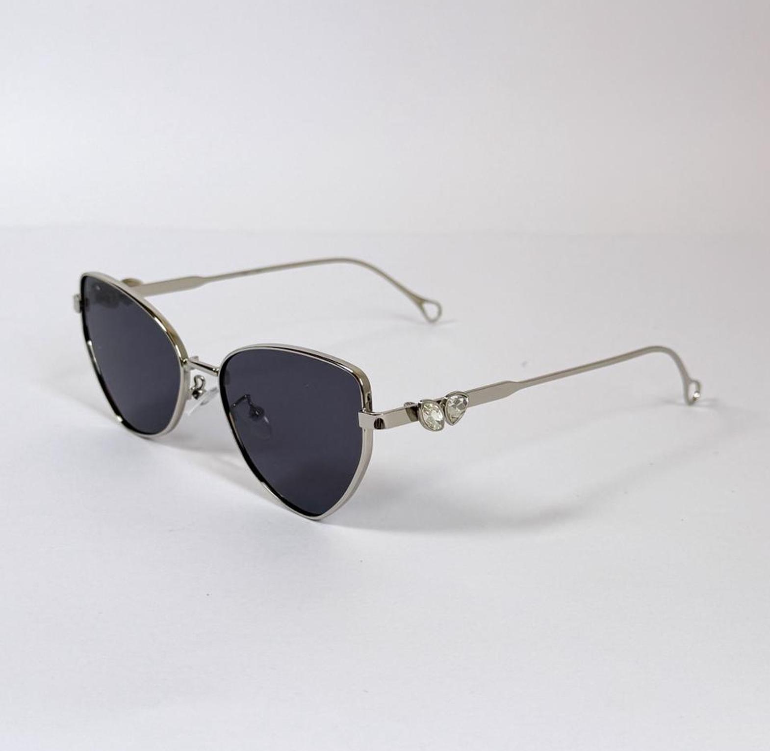 Sleek, chic, and effortlessly stylish—Monroe Silver features a silver metal frame with dark lenses and jewel-adorned temples for an ultra-modern, glamorous finish.