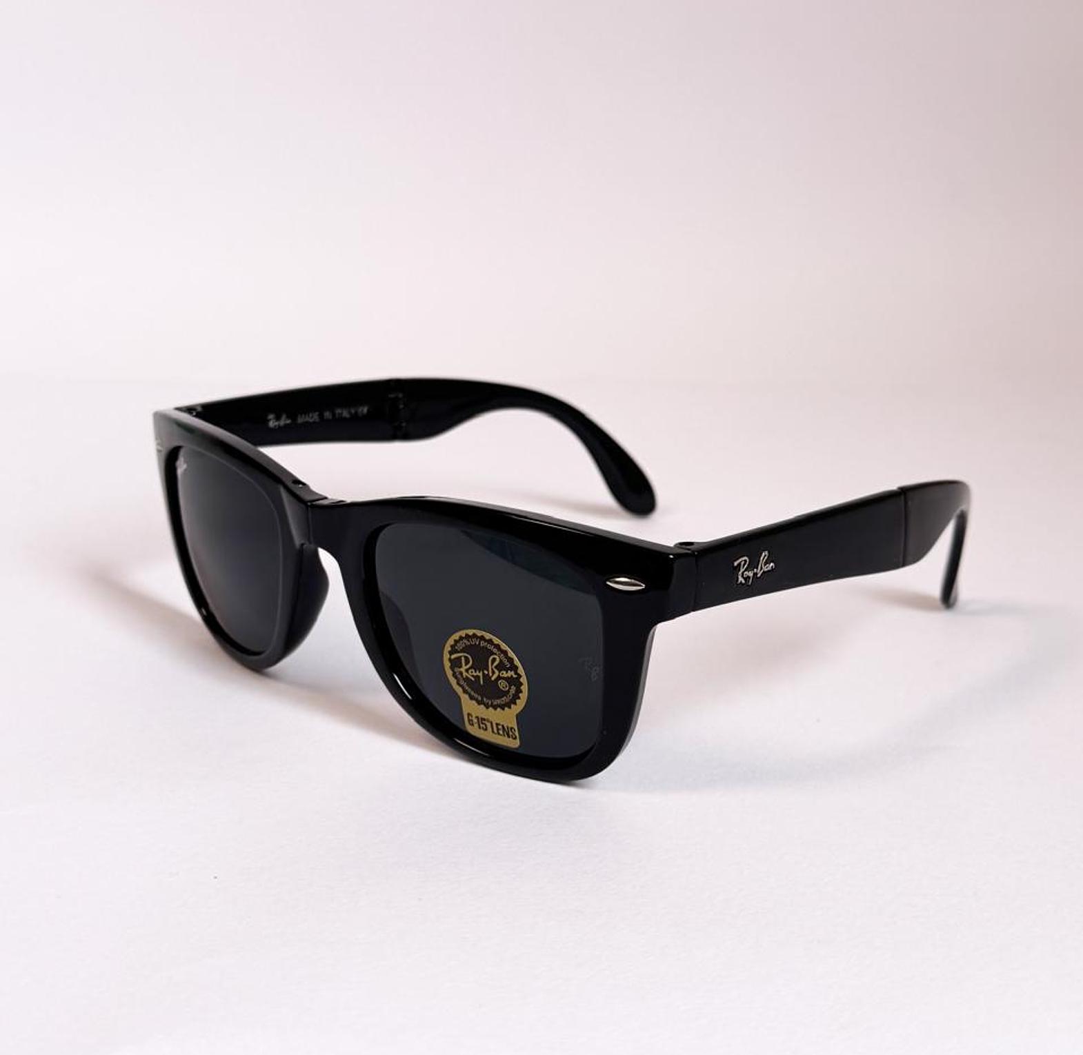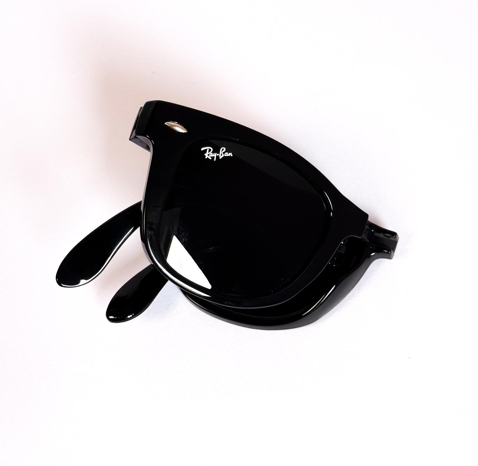 Classic Ray-Ban Wayfarer sunglasses redesigned with a foldable frame for easy portability without losing iconic style.