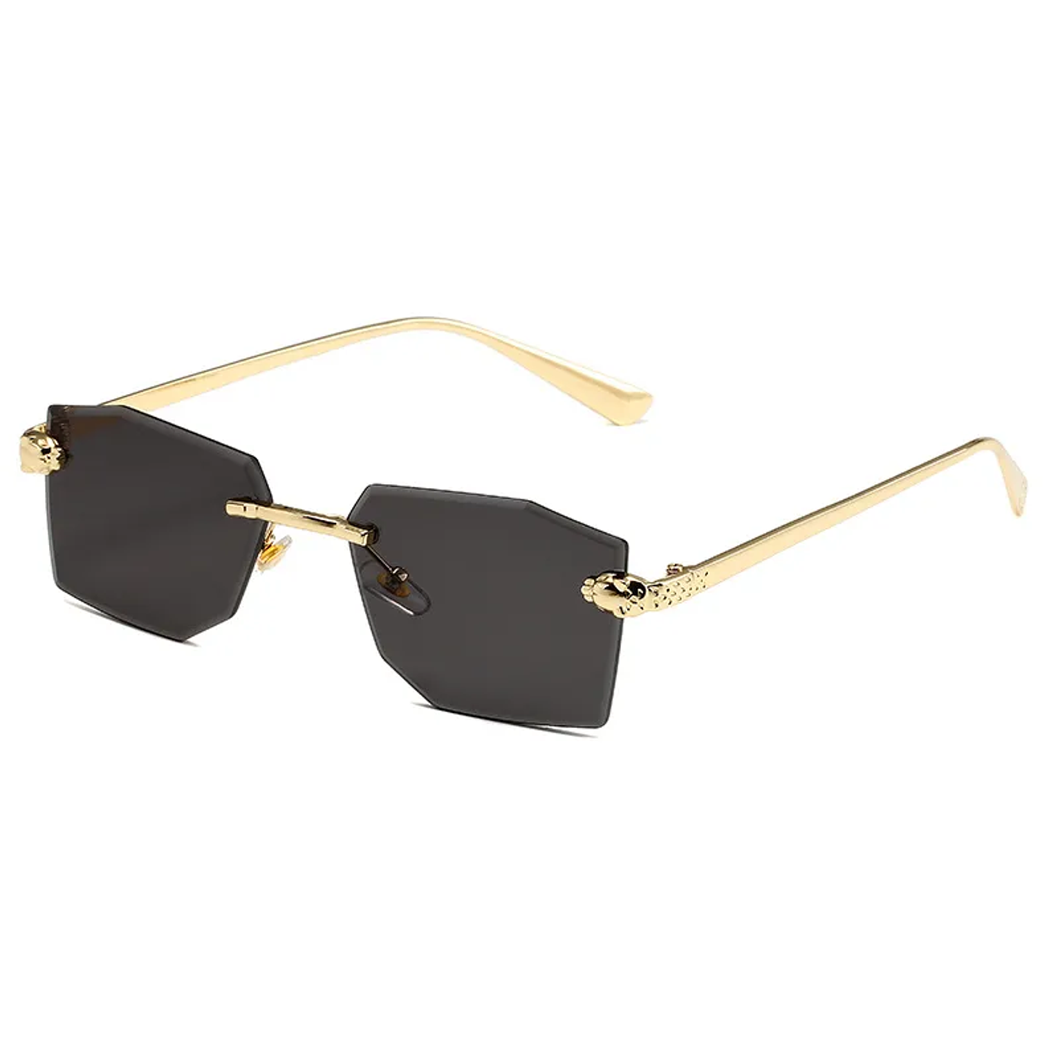 A bold statement piece with sleek black geometric lenses and fierce gold panther details—power and luxury in one.