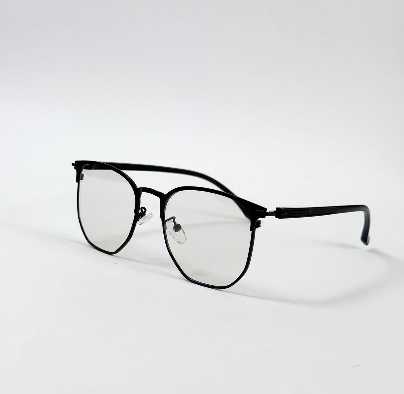 These versatile optical frames feature a modern semi-geometric lens shape in a sleek matte black finish. Equipped with photochromic technology, they smoothly transition from clear indoor glasses to protective outdoor shades.