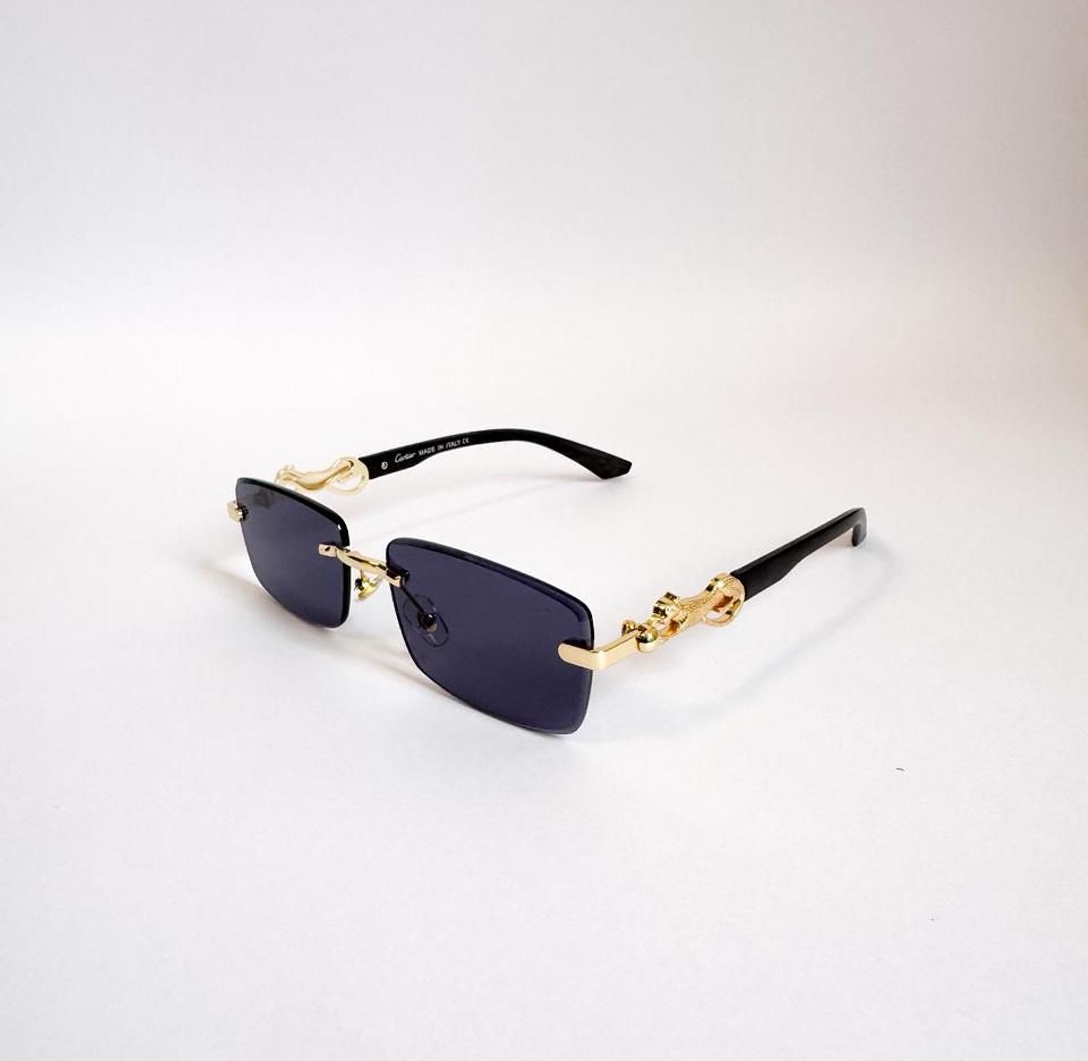 Elevate your style with these sophisticated rimless sunglasses featuring distinctive gold chain detailing and premium dark lenses. The perfect fusion of modern minimalism and luxury accessories for the discerning fashion enthusiast.