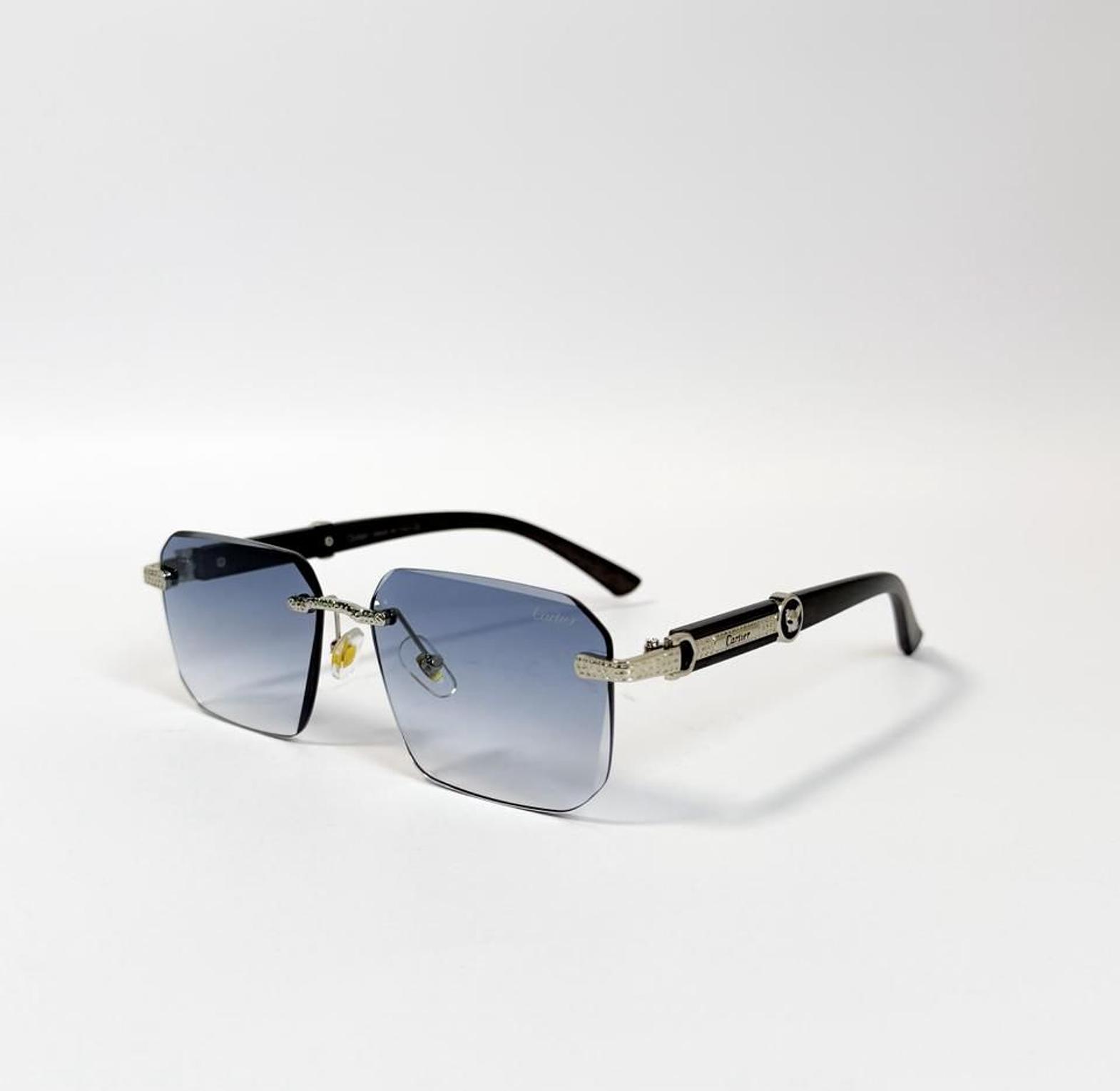 The Cartier Luxe 005 Rimless Gradient Sunglasses in Blue Fade represent the perfect fusion of contemporary style and timeless luxury craftsmanship. These premium sunglasses feature expertly crafted blue gradient lenses that transition seamlessly from deeper blue at the top to crystal clear at the bottom, providing optimal sun protection while maintaining excellent visibility for reading or close-up tasks. The sophisticated rimless design showcases elegant gold-tone metal accents and decorative temple details that exemplify Cartier's renowned attention to detail and luxury heritage. The contrasting black temple arms with gold embellishments create a striking visual balance, while the lightweight construction ensures exceptional comfort during extended wear. The gradient lens technology not only offers comprehensive UV protection but also reduces eye strain in varying light conditions, making these sunglasses ideal for driving, outdoor activities, or urban exploration. The precision-engineered hinges and adjustable components provide a secure, customized fit that complements any face shape, while the distinctive blue fade effect adds a modern twist to the classic aviator-inspired silhouette. Whether you're attending high-profile events, enjoying leisure activities, or making a style statement in professional settings, these sunglasses deliver unparalleled sophistication and performance that reflects your discerning taste for exceptional eyewearÂ