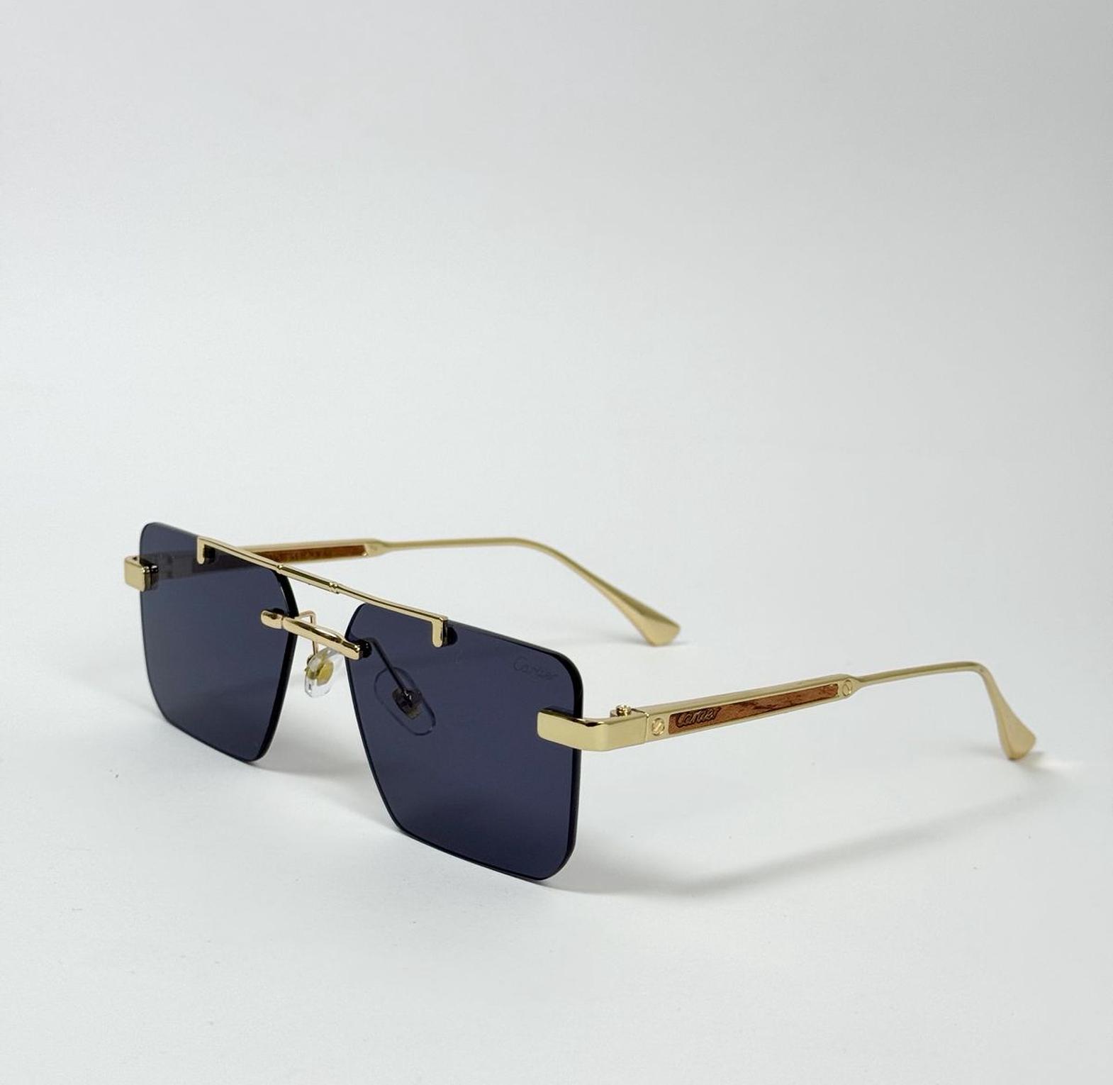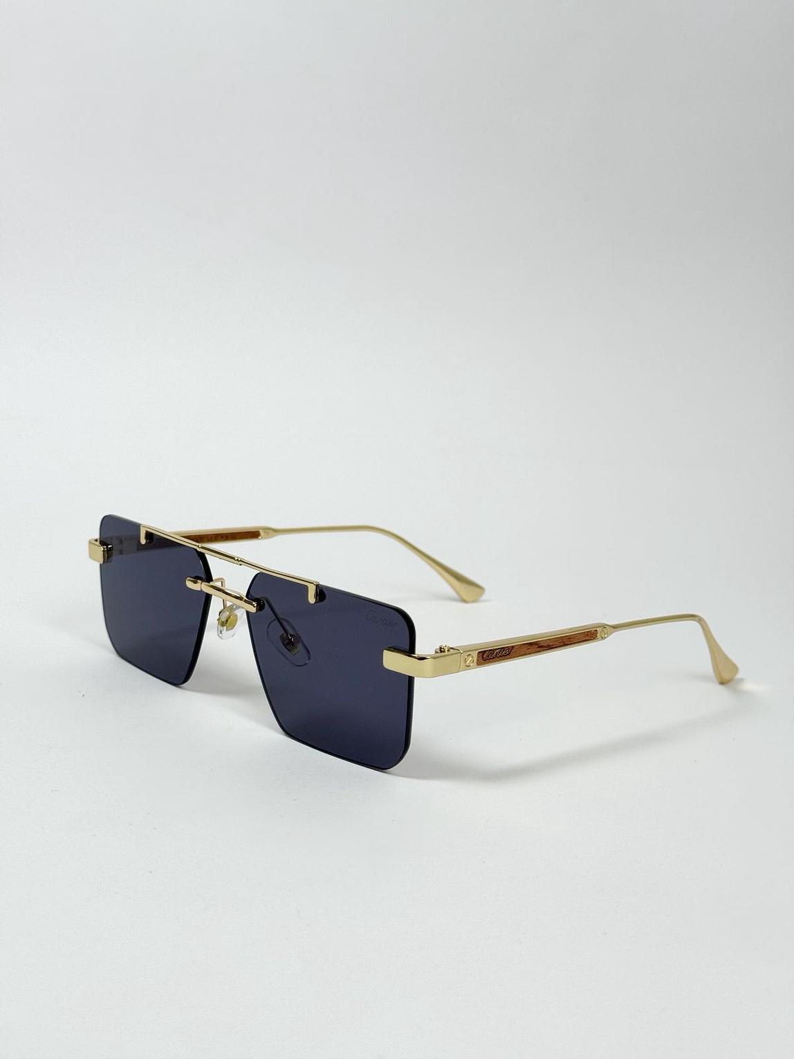 Elevate your style with these sophisticated, gold-tone rimless sunglasses. Featuring dark, rectangular lenses and a distinctive temple design, they offer a look of effortless luxury and modern refinement.