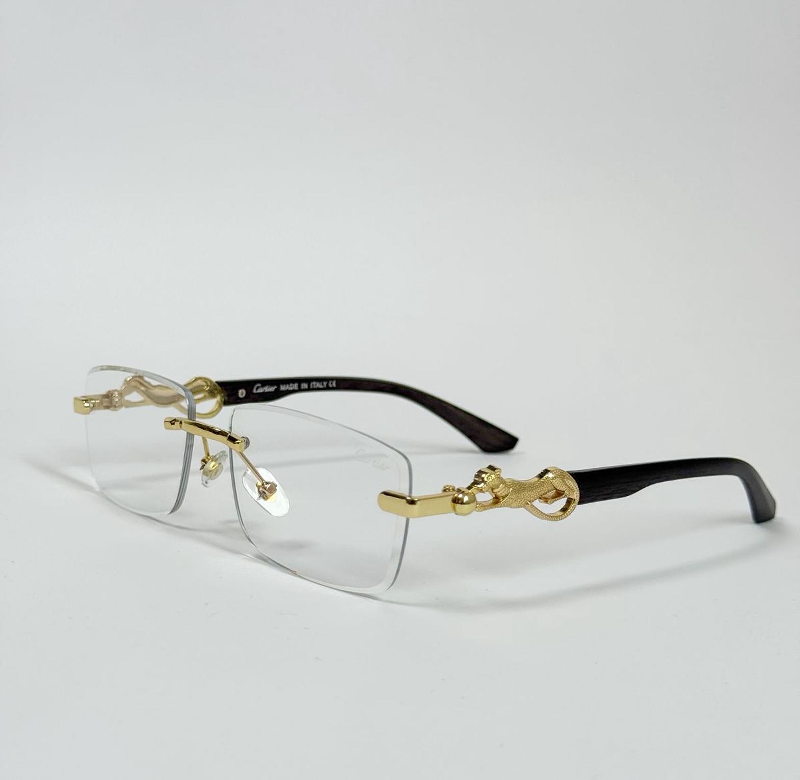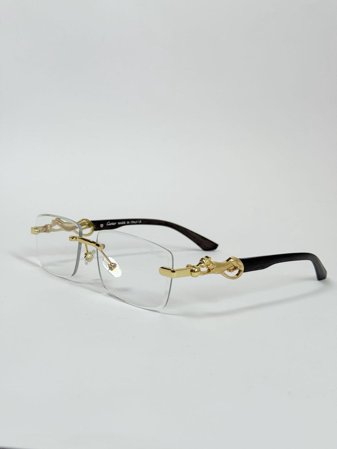 These luxurious rimless glasses feature the iconic three-dimensional panther head sculpture on each gold-finished temple, merging delicate, minimalist design with the Maison's signature untameable elegance.