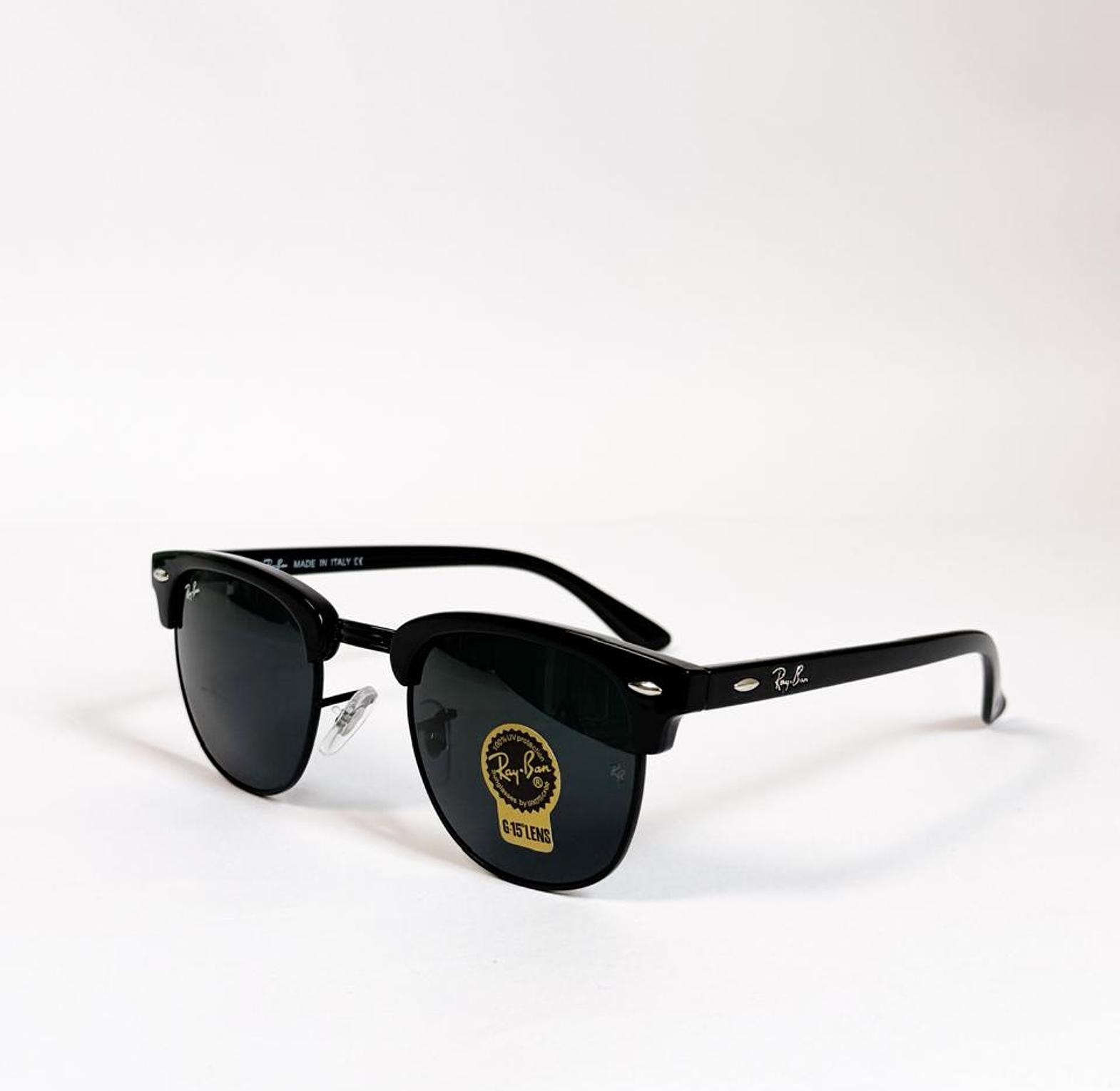 Classic Clubmaster sunglasses in a bold black frame paired with sleek silver detailing for a modern vintage look.
