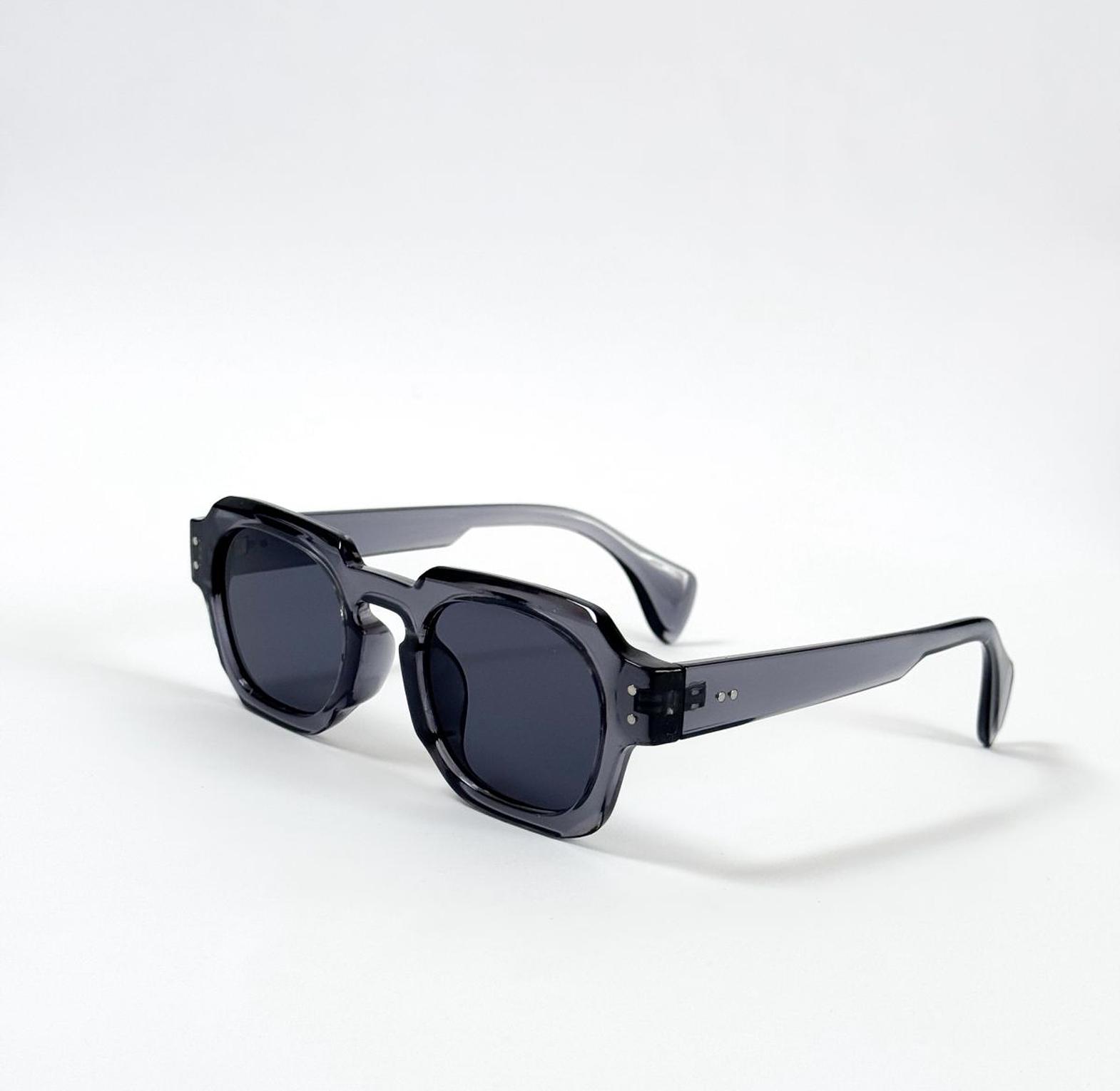 Make a distinctive style statement with these uniquely shaped shades crafted in a sophisticated transparent grey acetate. The bold, angular frames and dark lenses offer a contemporary edge for the fashion-forward individual.