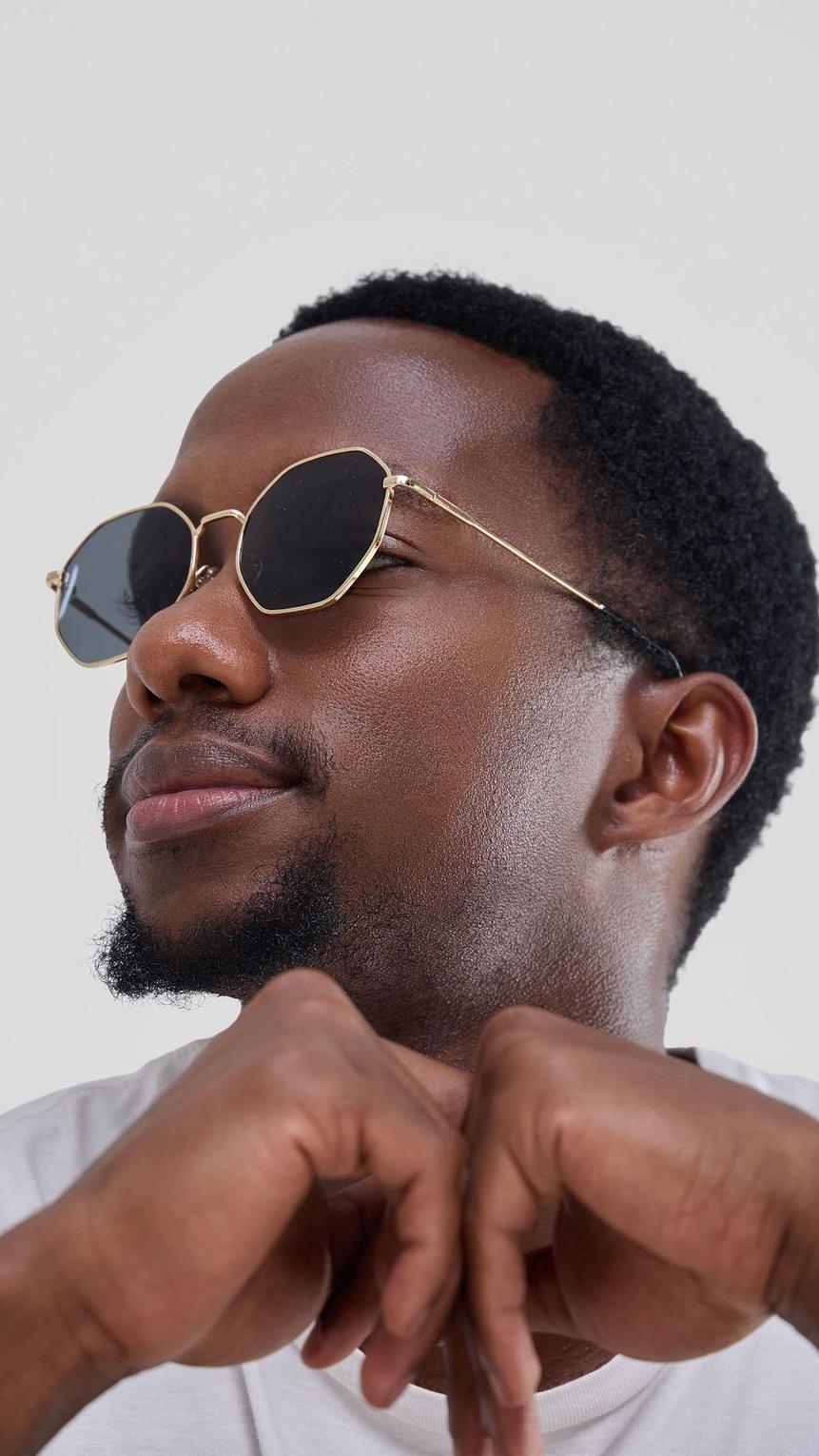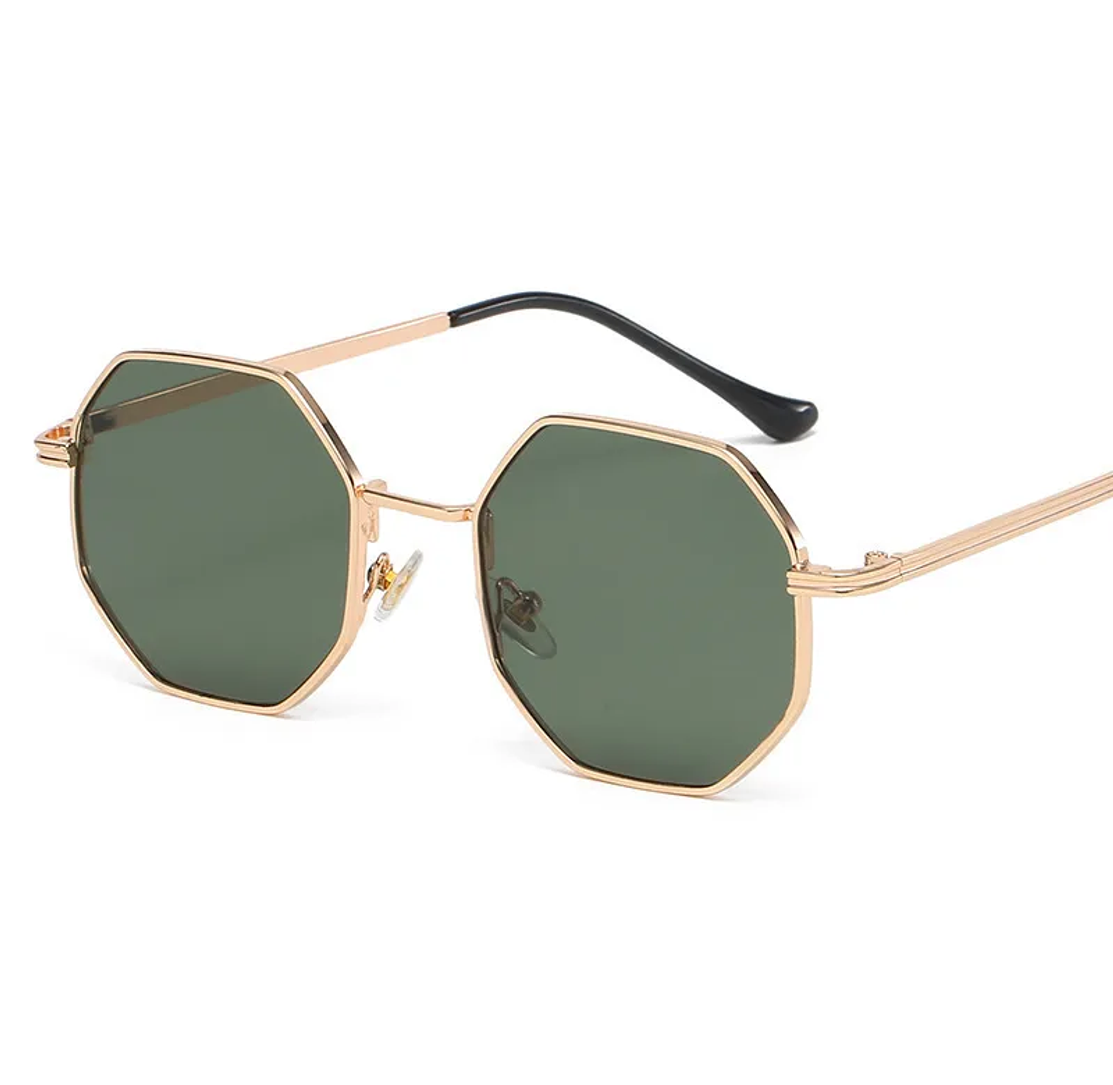 Elevate your look with the Kredo Gold Green Sunglasses—sleek, octagonal, and effortlessly stylish with a luxe gold frame and striking green lenses.