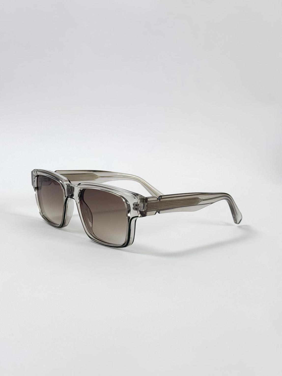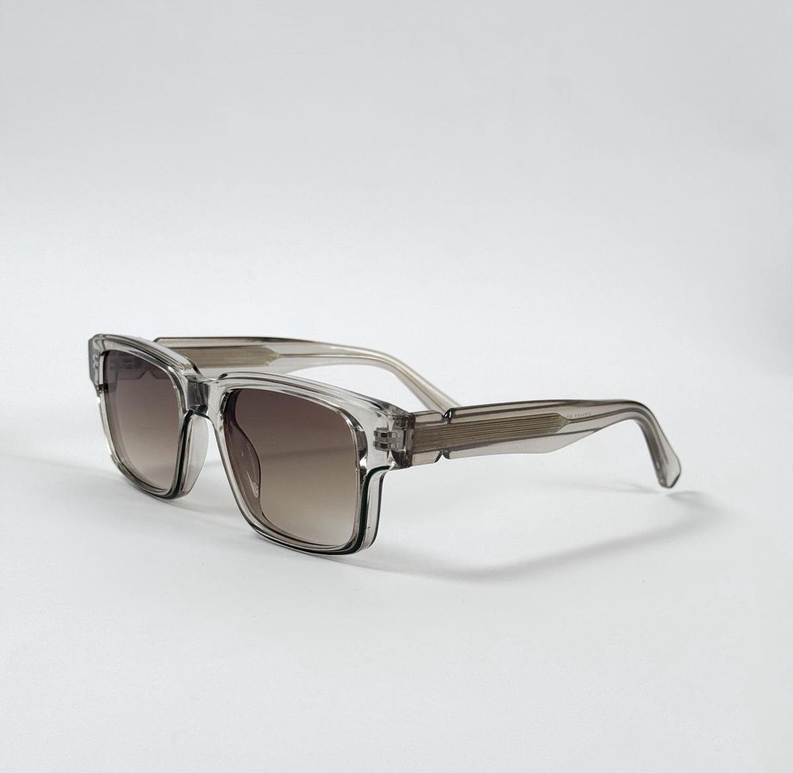 These striking rectangular frames are crafted from a thick, cool-toned translucent grey acetate for a modern, architectural feel. The gradient lenses and bold silhouette ensure maximum sun protection and effortless urban chic.