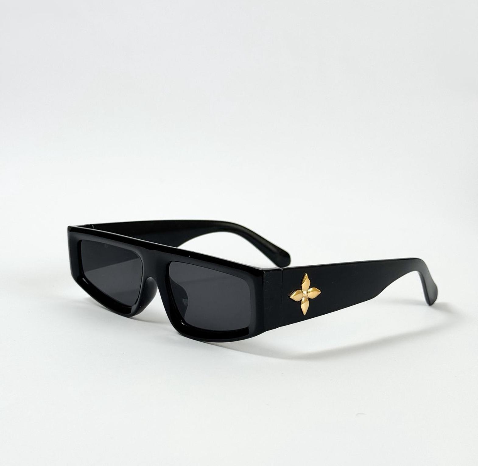 Elevate your daily look with the bold, rectangular silhouette of these sleek black sunglasses. The single, brilliant golden accent adds a touch of signature luxury to an otherwise minimalist, high-fashion frame.