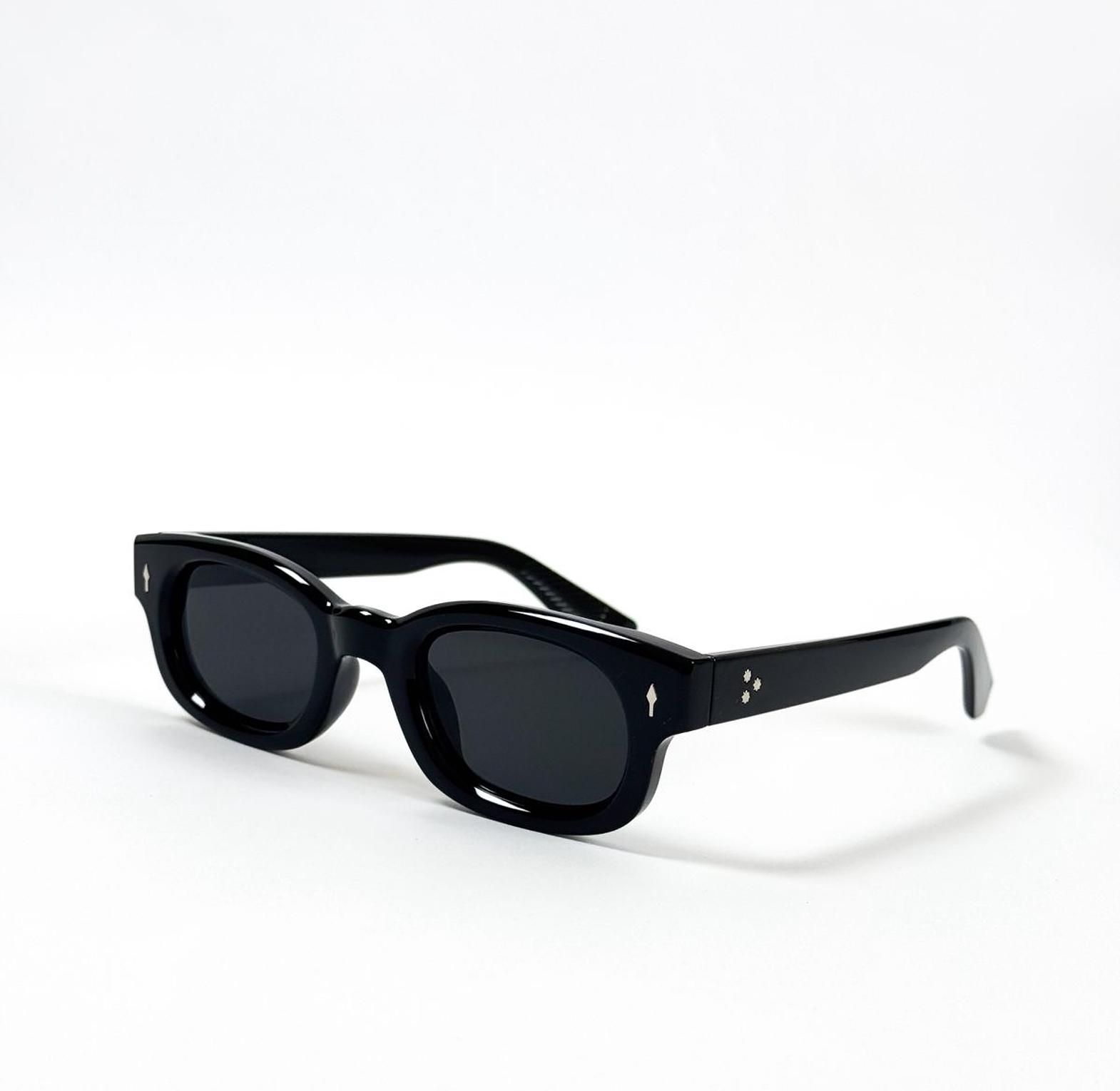 Achieve an effortlessly cool, micro-sunglass trend with these sleek, ultra-narrow frames in polished black acetate. A subtle white logo detail at the temple adds a refined, minimalist mark of distinction.