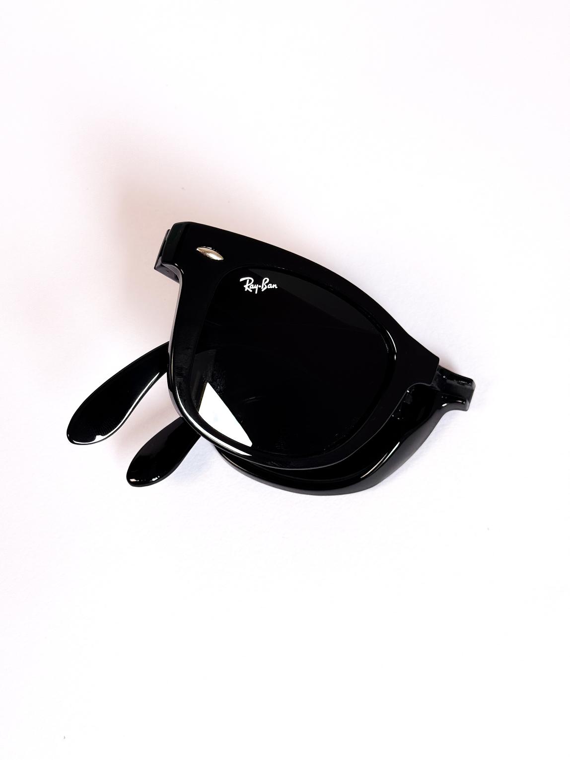 Classic Ray-Ban Wayfarer sunglasses redesigned with a foldable frame for easy portability without losing iconic style.
