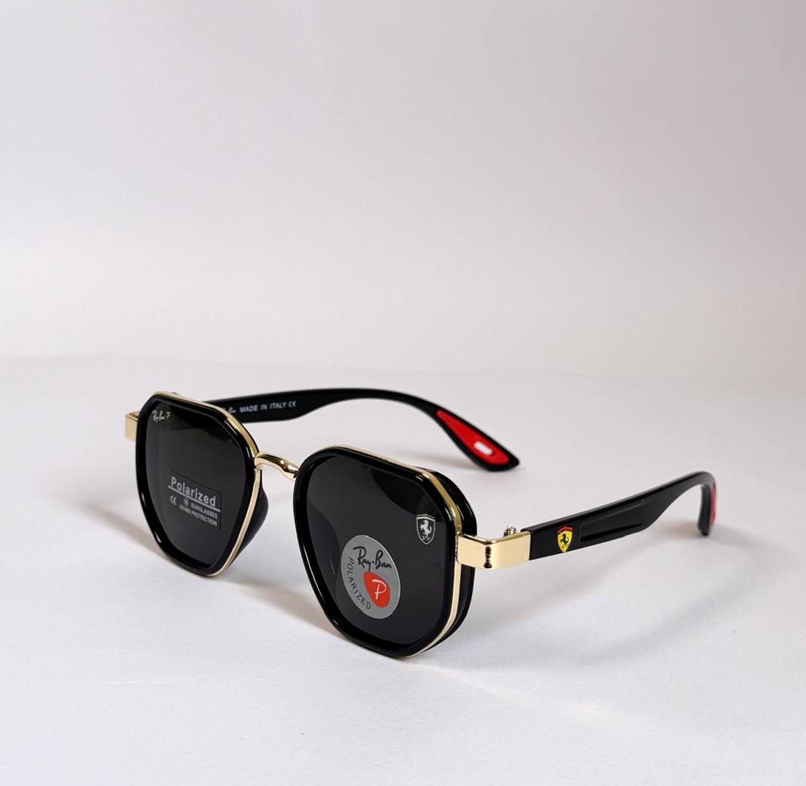 Iconic Ray-Ban Hexagonal sunglasses with a striking gold frame and bold black lenses for a sleek, modern edge.