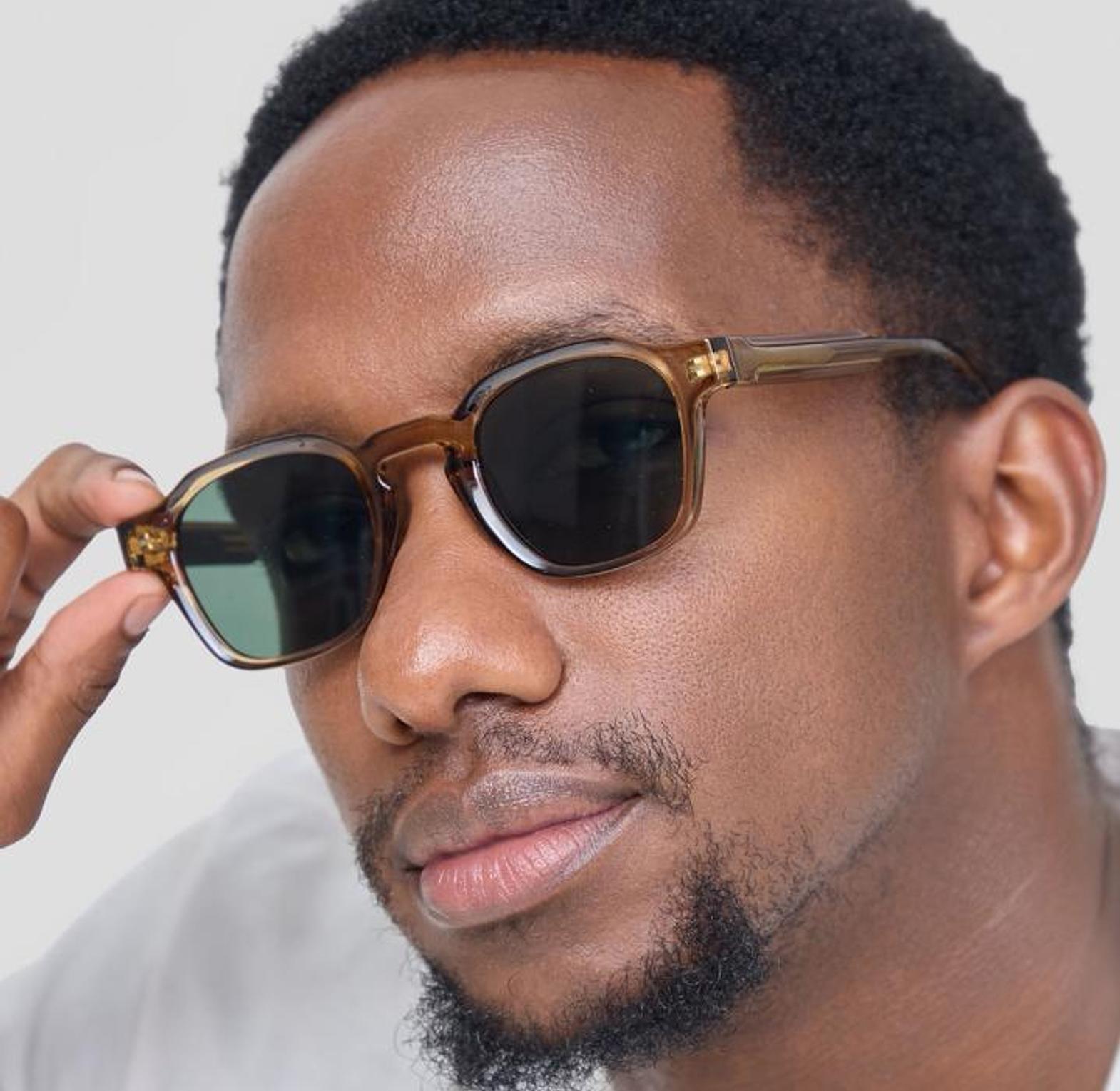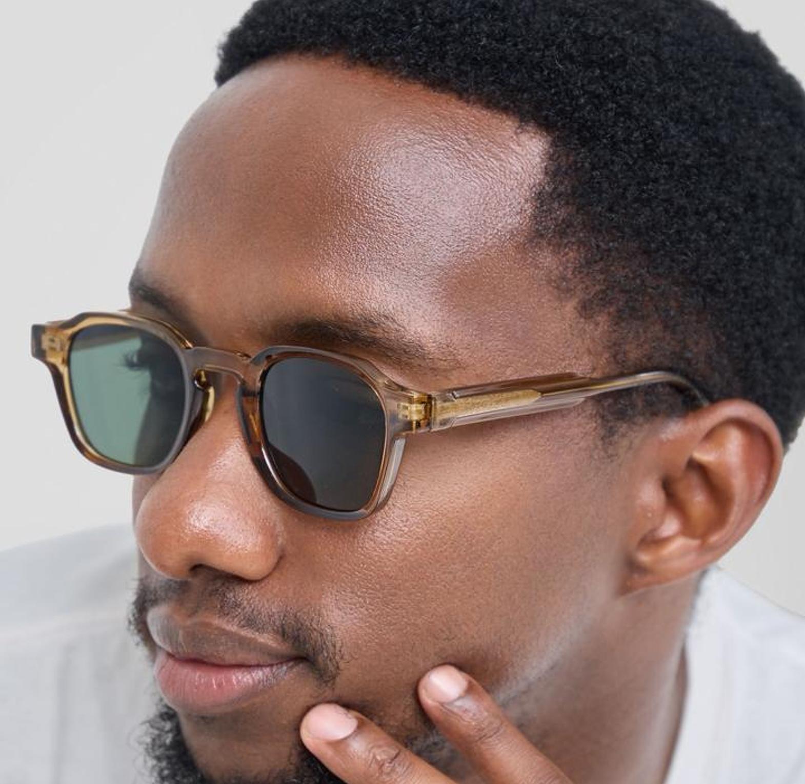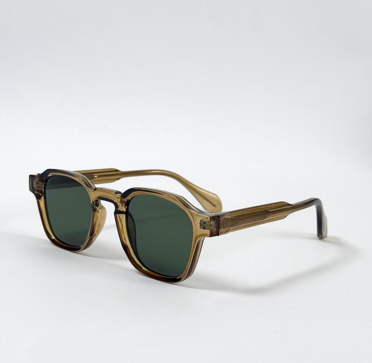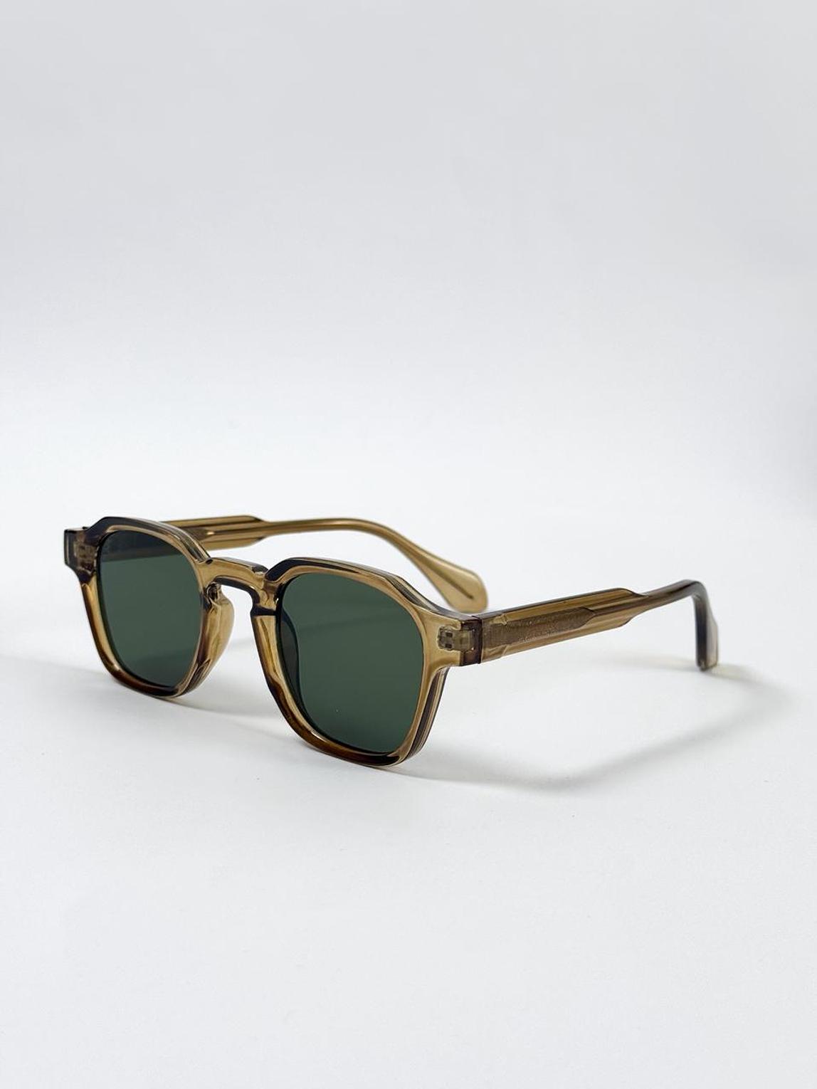 Introducing a fresh, earthy aesthetic with these uniquely shaped frames in a rich, translucent olive-brown acetate. The subtly geometric lenses and dark green tint provide a sophisticated, nature-inspired accessory perfect for refined style.