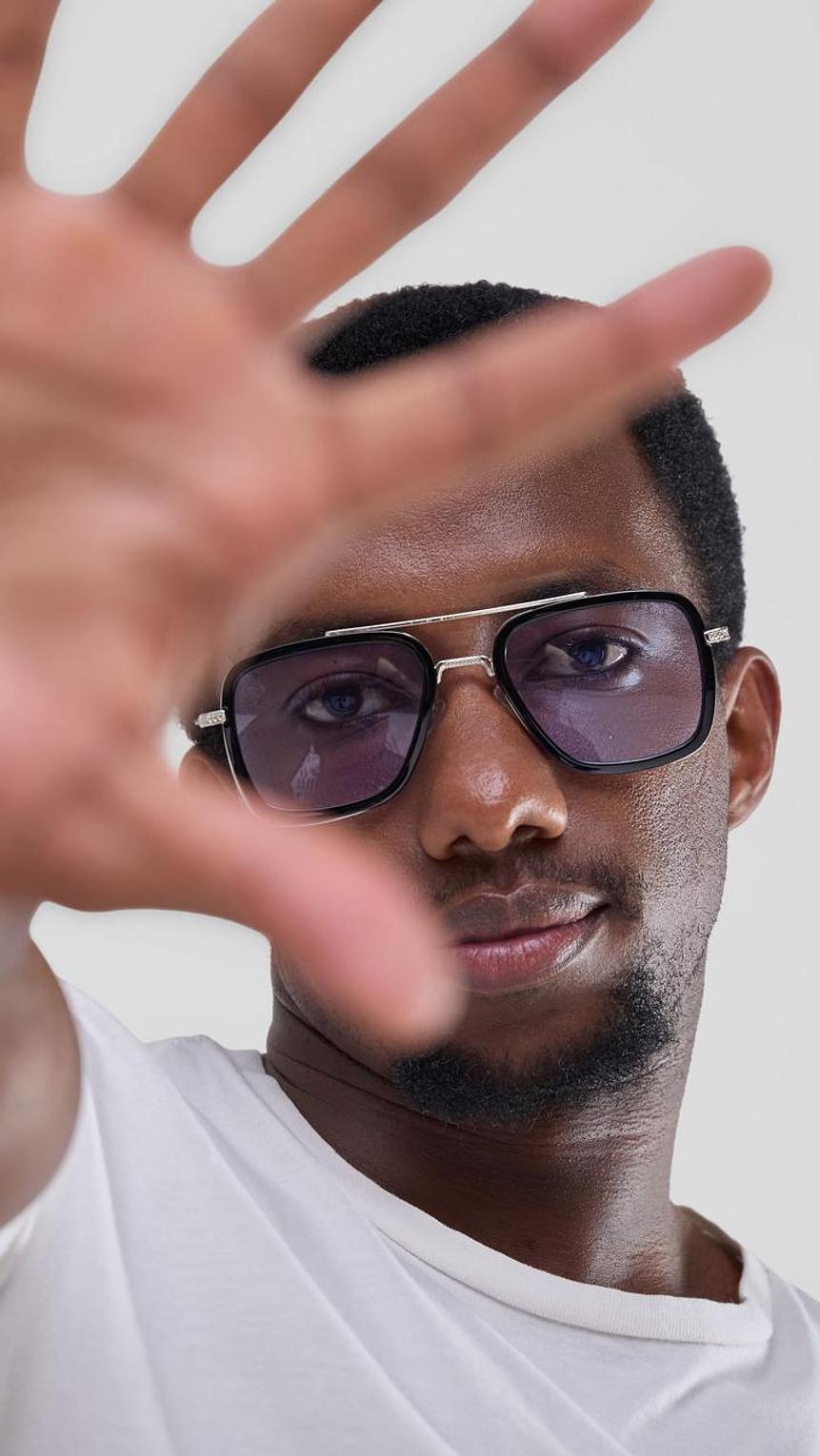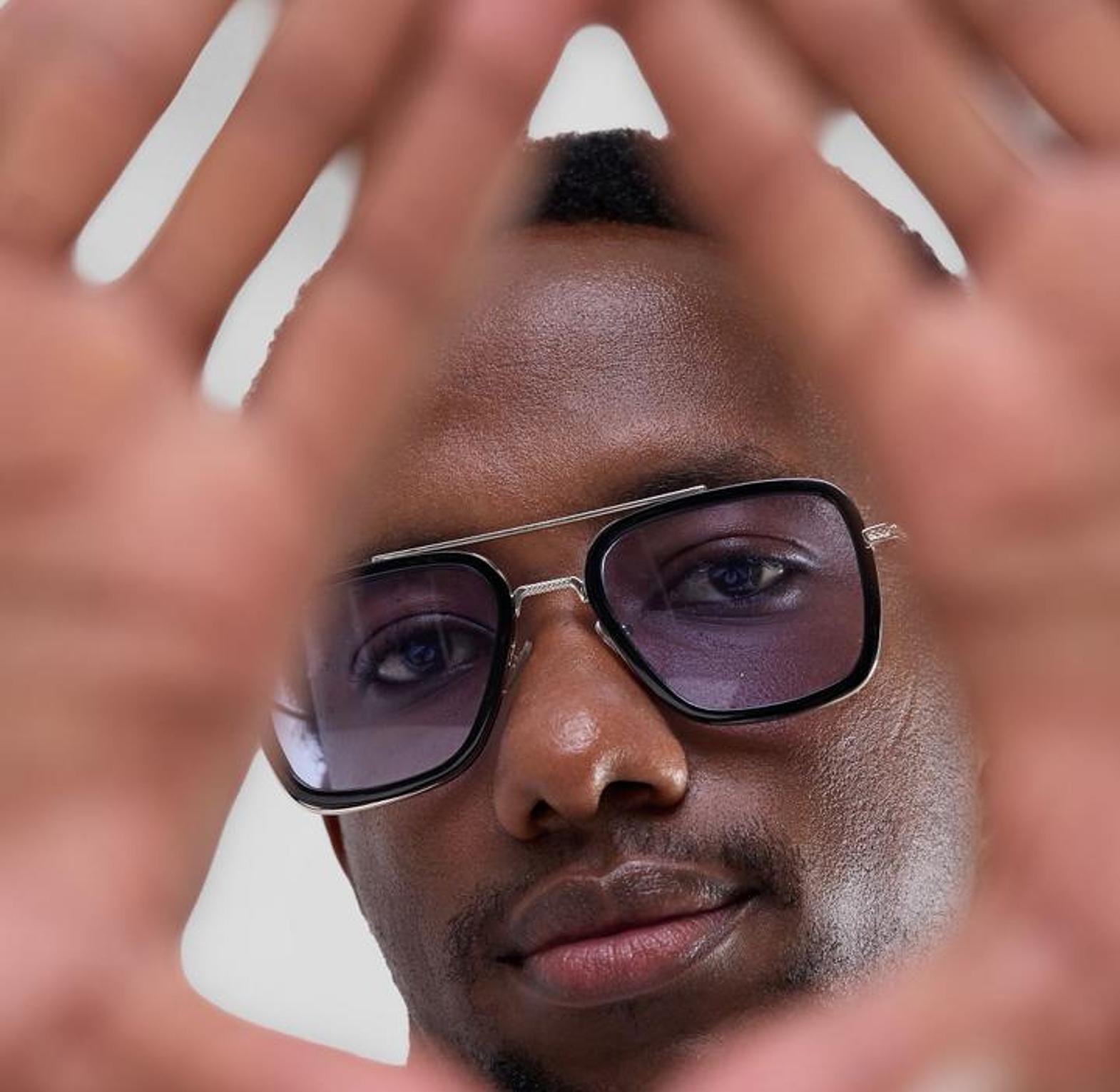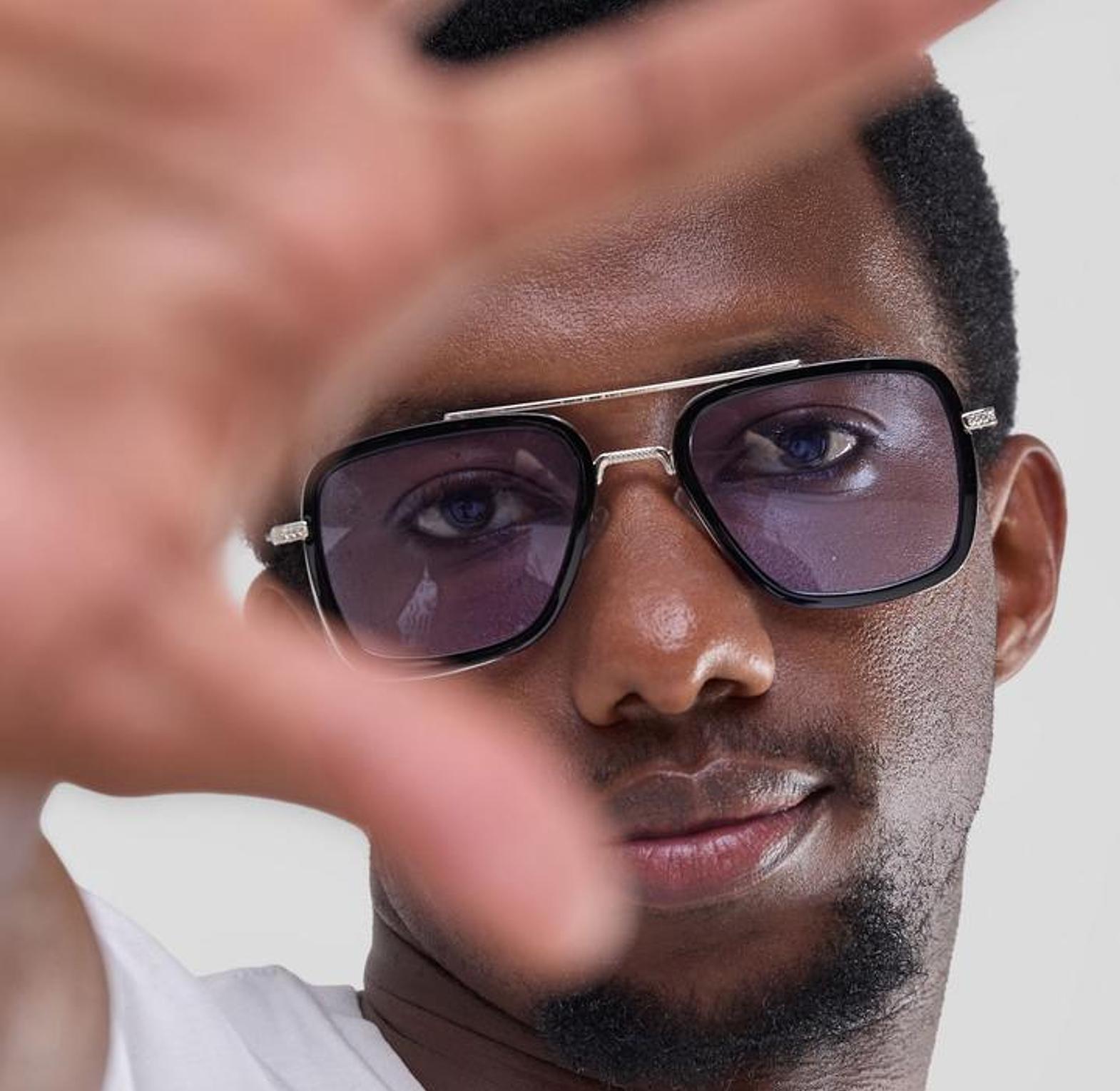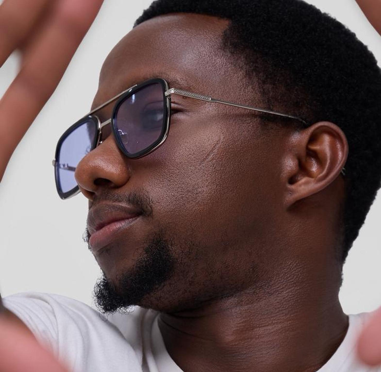 leek and modern—the Stoner Blue Sunglasses feature a bold square frame, polished silver-tone details, and cool blue lenses for a statement look
